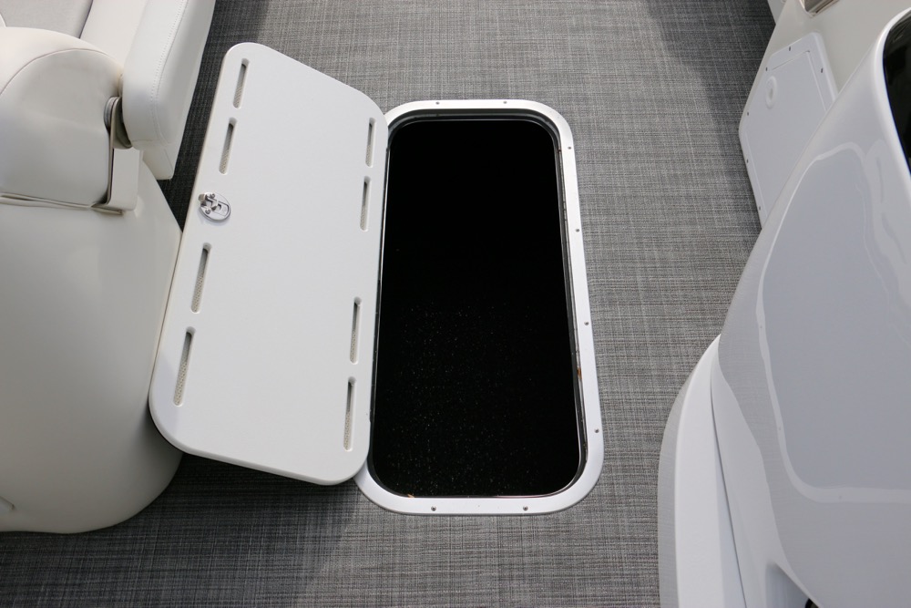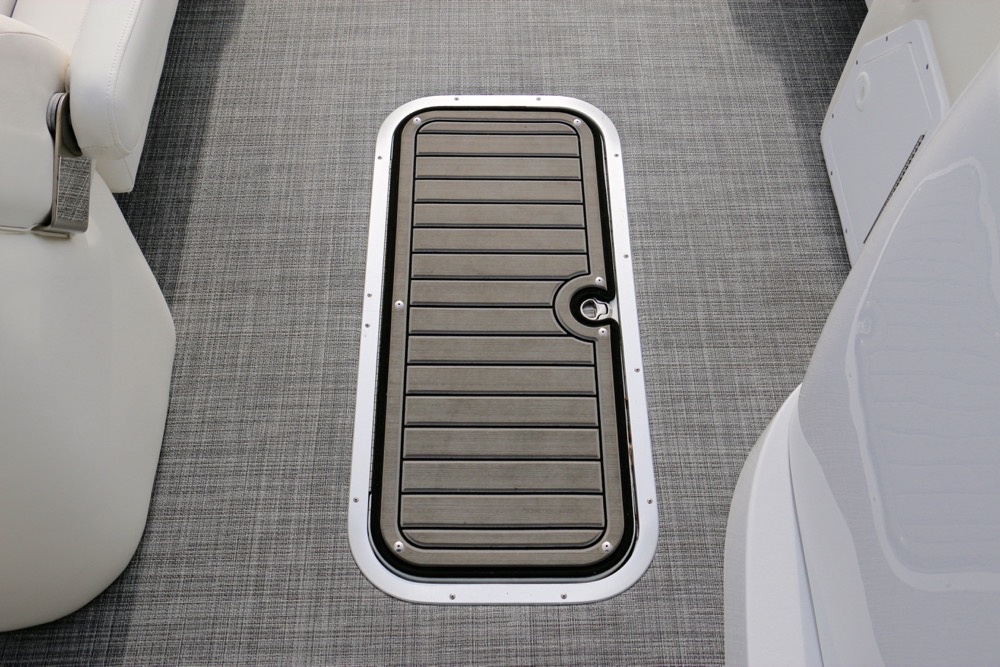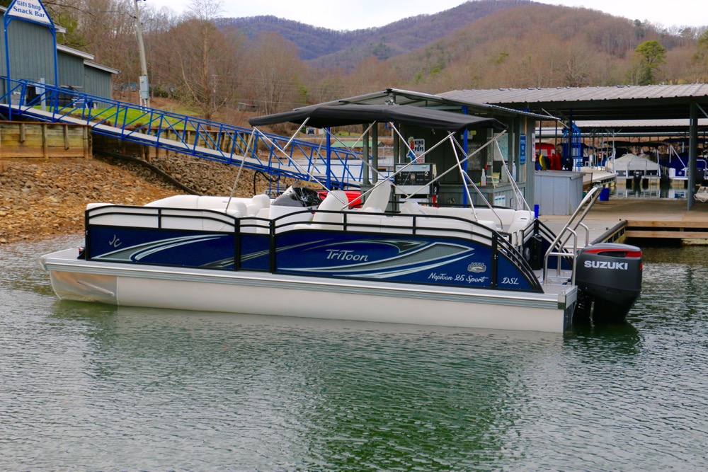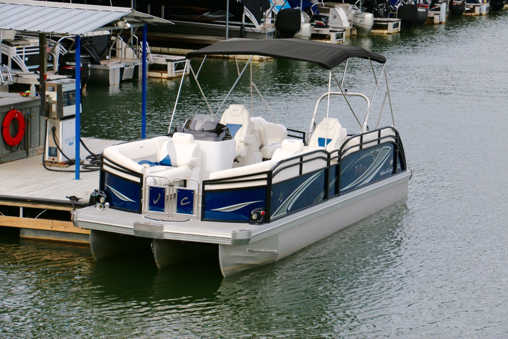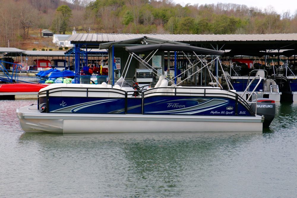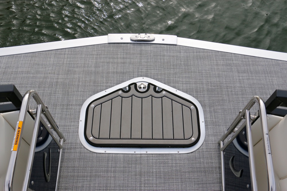 2019 JC NepToon Sport 25TT TriToon Aft Lounge featuring JC’s new High Tide Hull! With a 6″ deep deck and dramatically stronger floor joists, the new High Tide Hull creates a striking and dynamic look on the water with the strongest deck and structure in the industry. The new 6″ deep deck also features a deeper ski and wakeboard locker, bow anchor locker, high polish corner castings, and stainless steel rubrail insert around the perimeter of the boat.