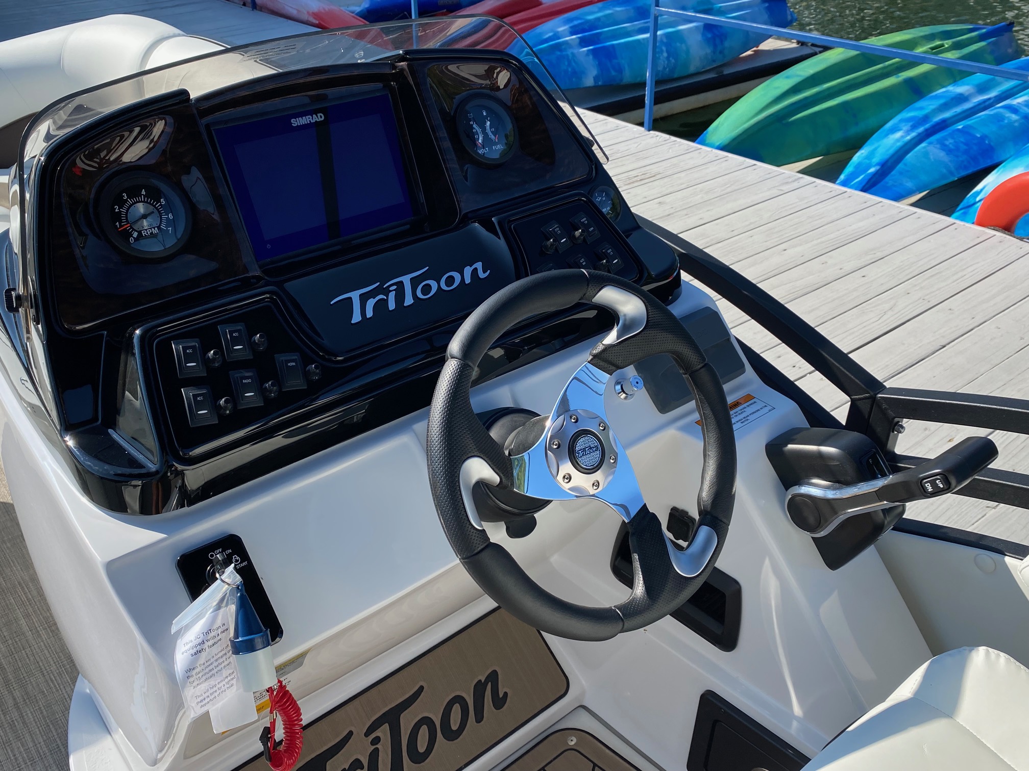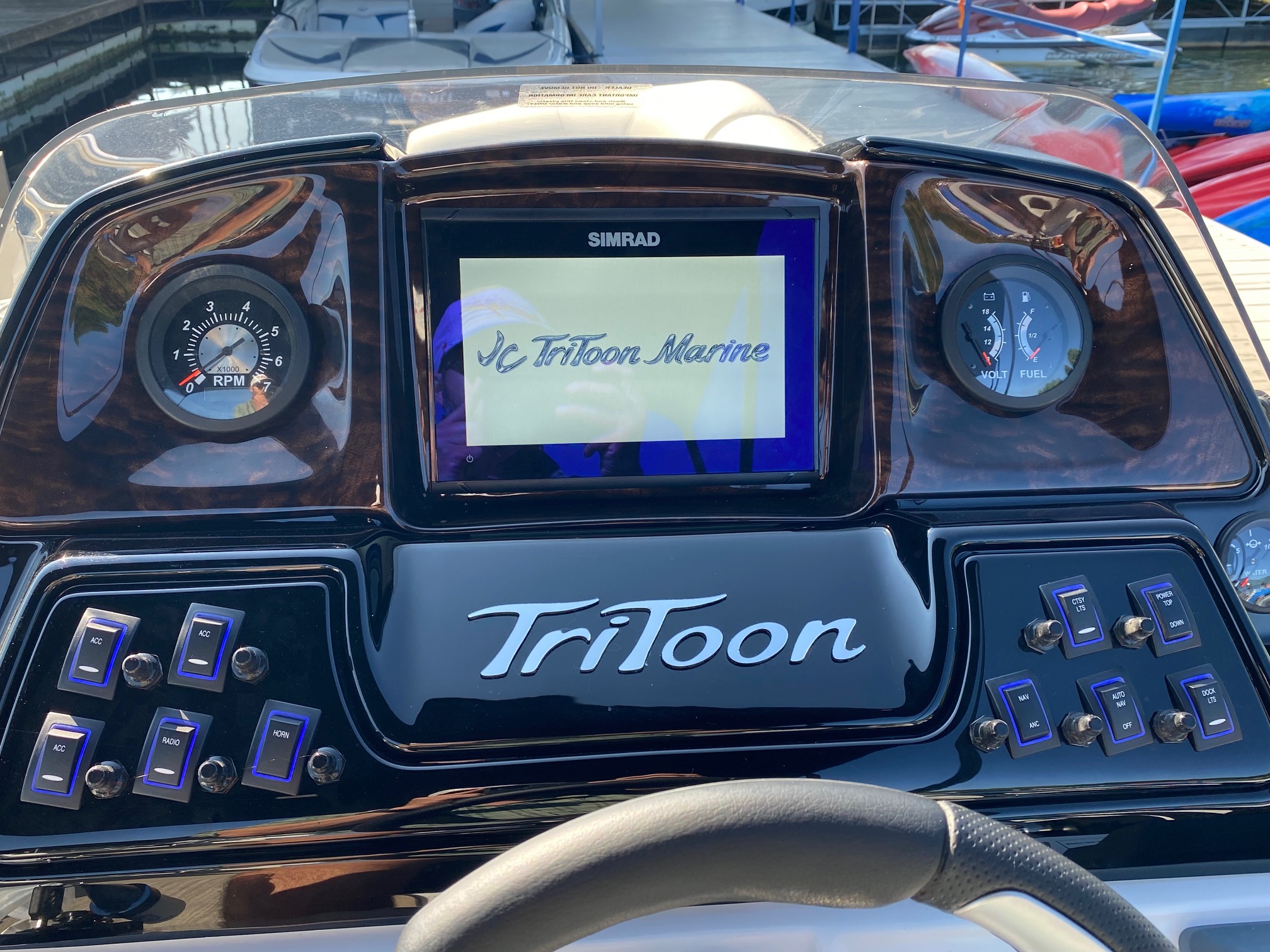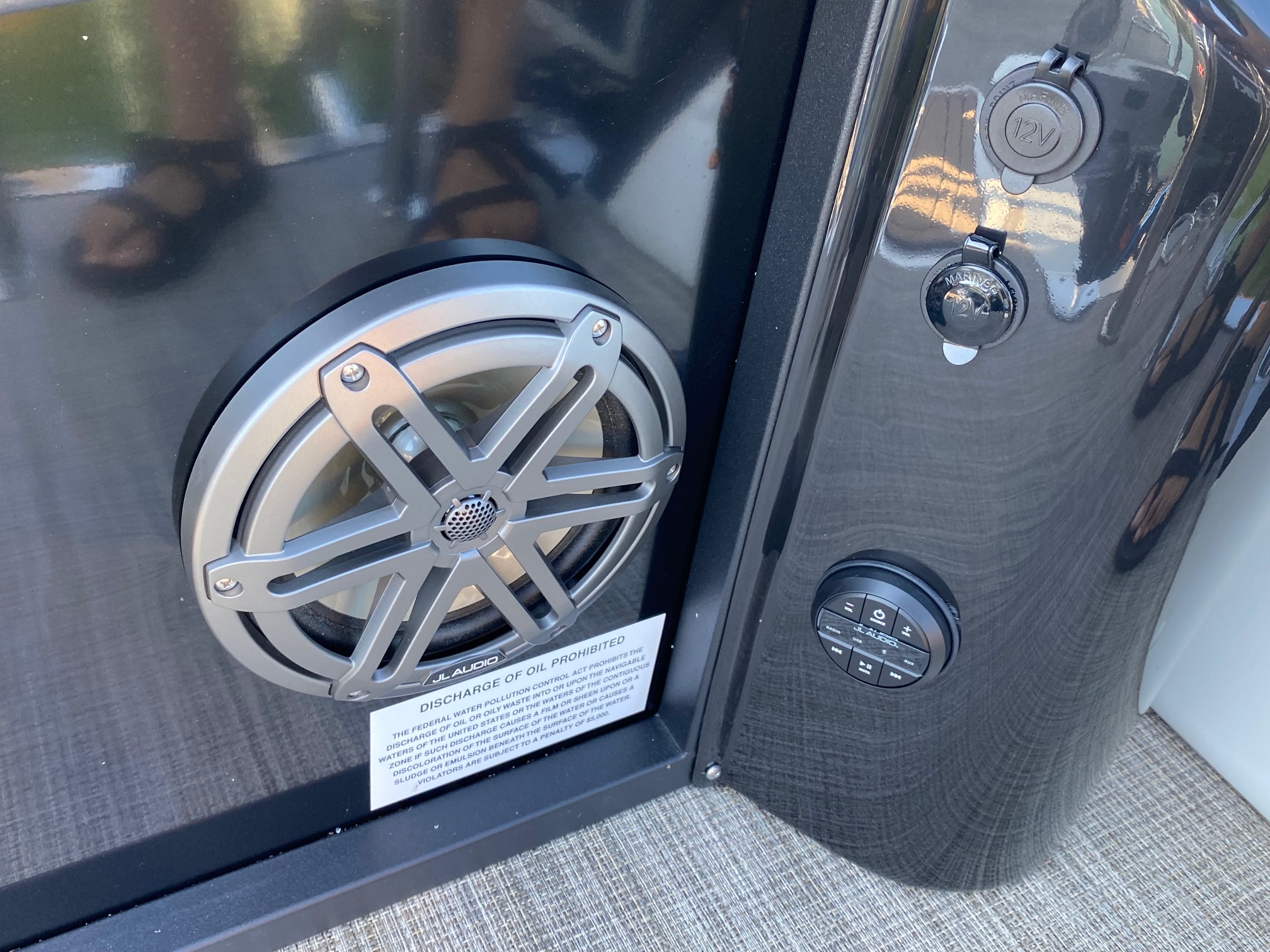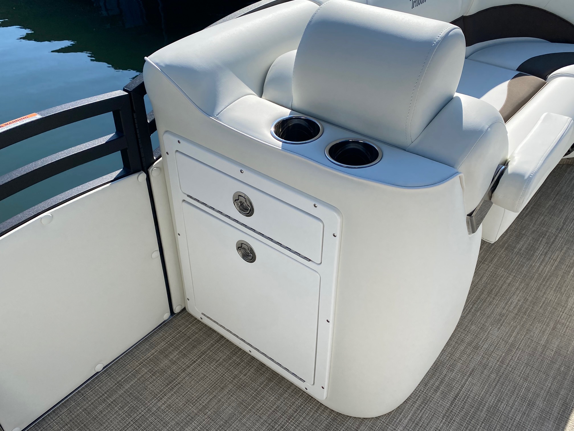 Other features include: JC’s TriToon Sport Hull with hydro-performance fins, aluminum underskin, and power-assist hydraulic steering, JL Audio Media Master stereo with color display, bluetooth, transom remote control, 2 JL Audio Amps, (6) JL Audio 7.7 series speakers inside the boat with (2) additional JL aft deck speakers, USB & Aux. plugs, New power management system to efficiently optimize dual battery usage, New high-end upholstery exclusive to JC TriToon, Stainless Steel Arm-Rest Brackets, New Stitched “JC TriToon” Logos on the seats, Improved Stainless Steel gates, New Steering Wheel, Upgraded Upholstery Trim Package, Stainless Bow Anchor Cleat, and more.