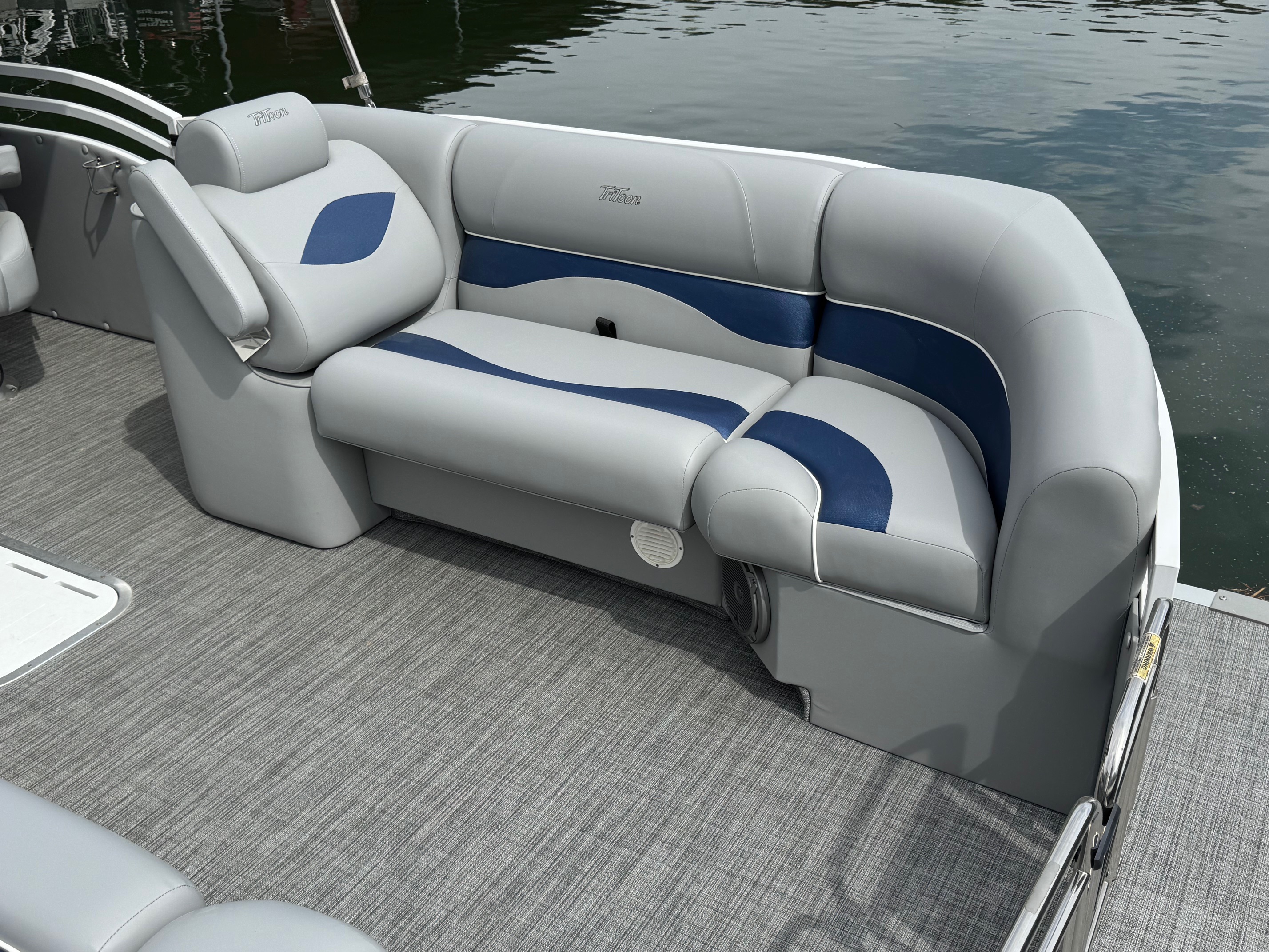 Come experience the most premium TriToon rental boat in North Georgia!  Our 24′ JC Sport Sport Pontoon Rental features a V6 Suzuki 250 hp fuel-efficient 4-stroke engine, JC’s  high-performance TriToon Sport hull for improved speed and handling, and power-assist hydraulic steering for easy driving and control.  The seating configuration offers dual Captain’s chairs, longer bimini shade, and dual stern lounges to cruise and relax all day!  It’s great for a day of cruising and exploring or an exciting day of watersports pulling a tube. Features include a JL Audio Bluetooth Stereo, Sunbrella custom bimini for shade, Garmin Color Fish & Depth Finder, Heavy Duty tow bar for tubing, anchor winch, reclining Captain’s Chair, premium Seagrass flooring, and seating for 12 passengers. We offer our extreme double tube for rent with these sport pontoon boats.  Other towing (skis, wakeboard, etc.) are not allowed with this boat.  Get your Double Tube rental for FREE when you rent this boat for 3 or more days!