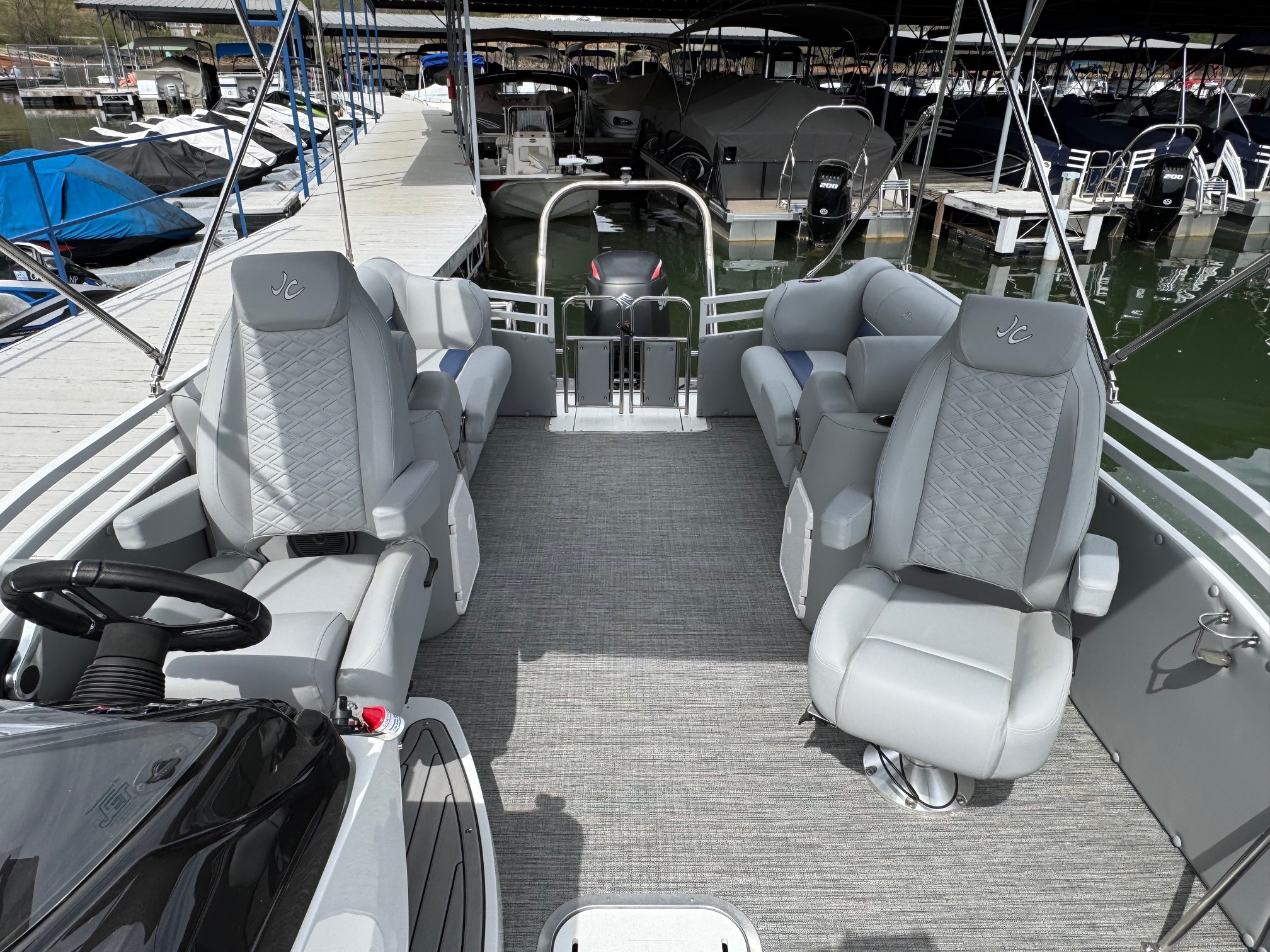 Come experience the most premium TriToon rental boat in North Georgia!  Our 24′ JC Sport Sport Pontoon Rental features a V6 Suzuki 250 hp fuel-efficient 4-stroke engine, JC’s  high-performance TriToon Sport hull for improved speed and handling, and power-assist hydraulic steering for easy driving and control.  The seating configuration offers dual Captain’s chairs, longer bimini shade, and dual stern lounges to cruise and relax all day!  It’s great for a day of cruising and exploring or an exciting day of watersports pulling a tube. Features include a JL Audio Bluetooth Stereo, Sunbrella custom bimini for shade, Garmin Color Fish & Depth Finder, Heavy Duty tow bar for tubing, anchor winch, reclining Captain’s Chair, premium Seagrass flooring, and seating for 12 passengers. We offer our extreme double tube for rent with these sport pontoon boats.  Other towing (skis, wakeboard, etc.) are not allowed with this boat.  Get your Double Tube rental for FREE when you rent this boat for 3 or more days!